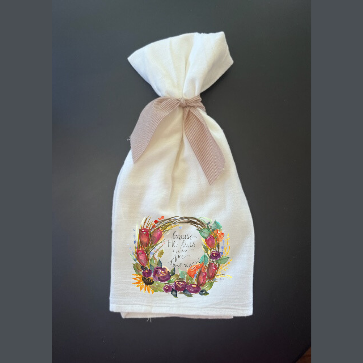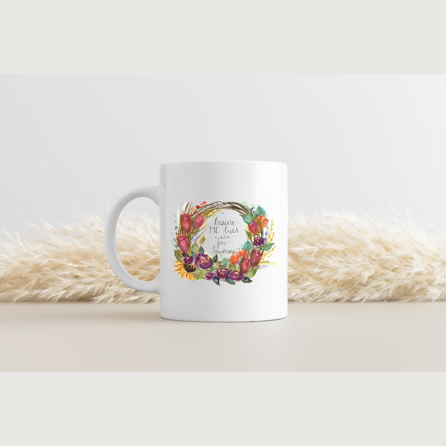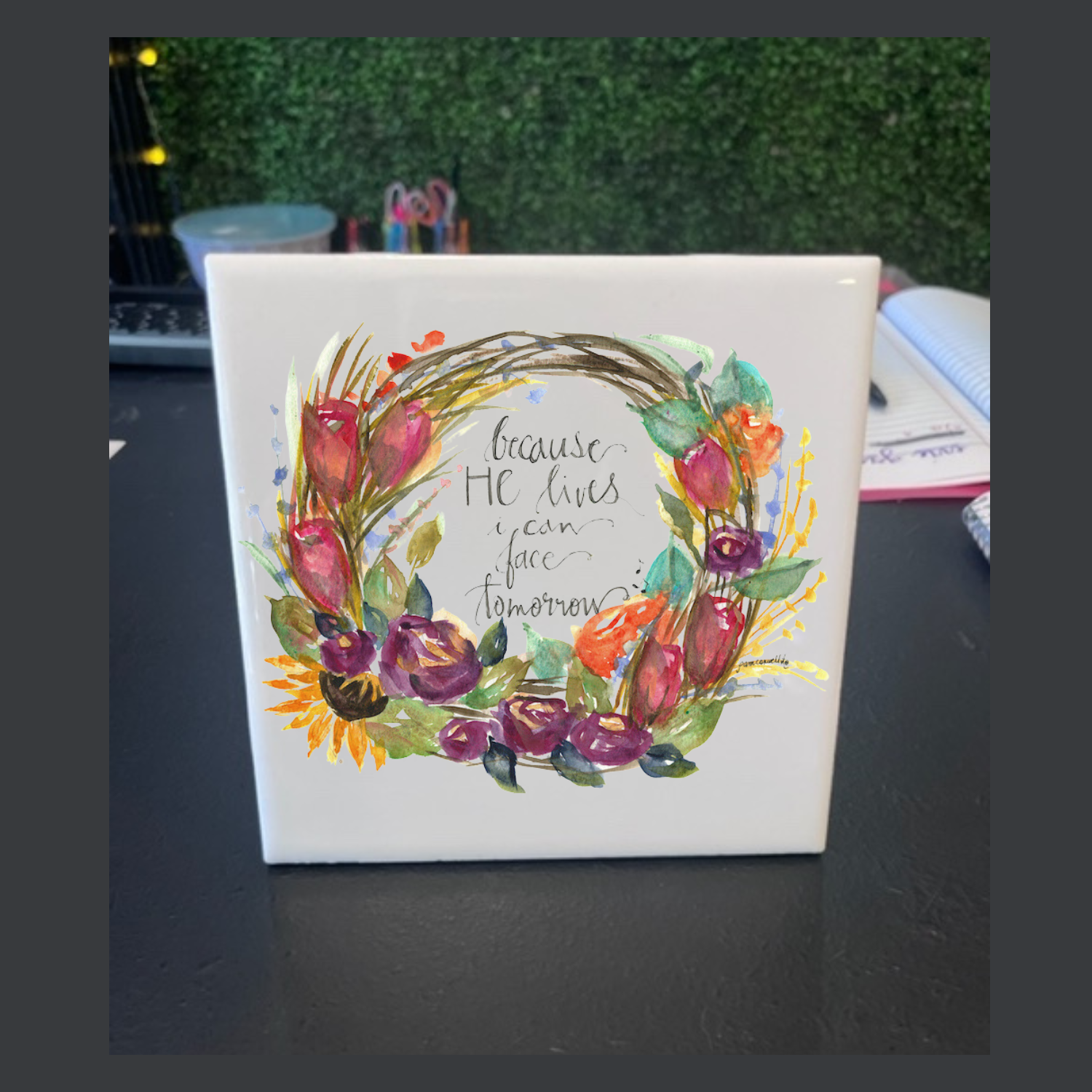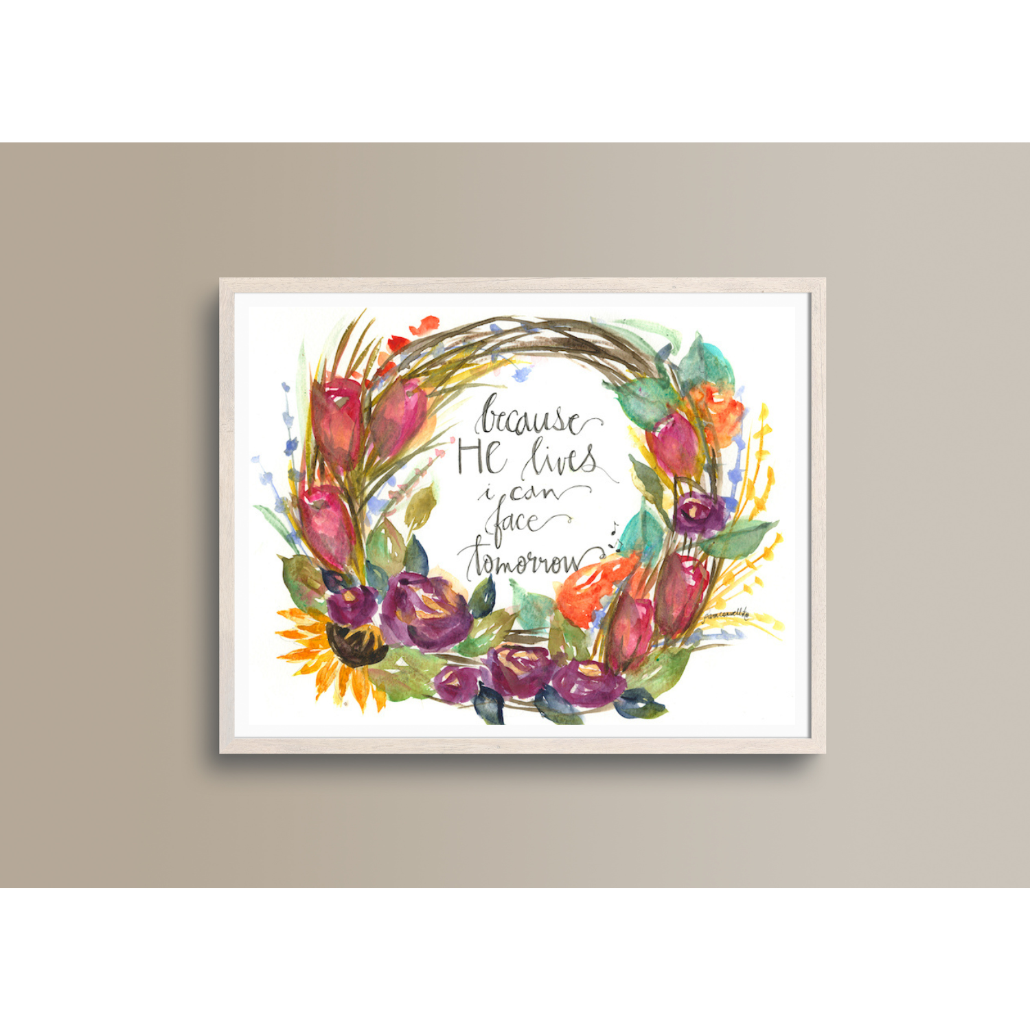 The "Because He Lives Wreath" is an original design painted by Pam Coxwell based on the hymn "Because He Lives".