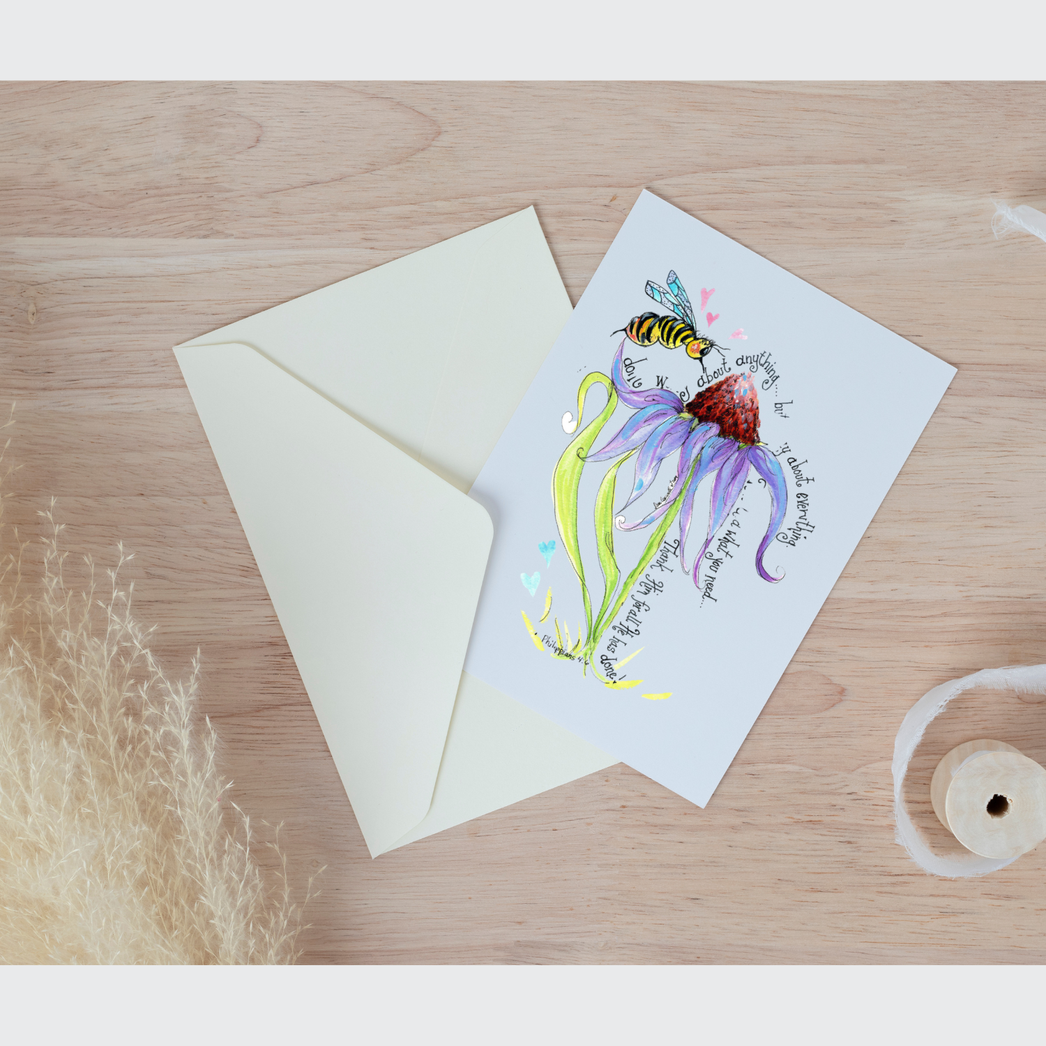 Note Cards: Our cards are available as singles or pack of four. Cards measure 4.25 x5.5 inches. Notecards are blank on the inside and come with blank white envelopes.
