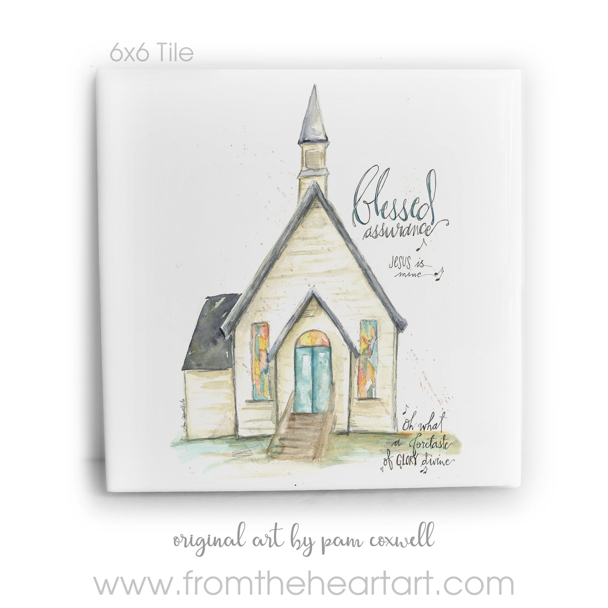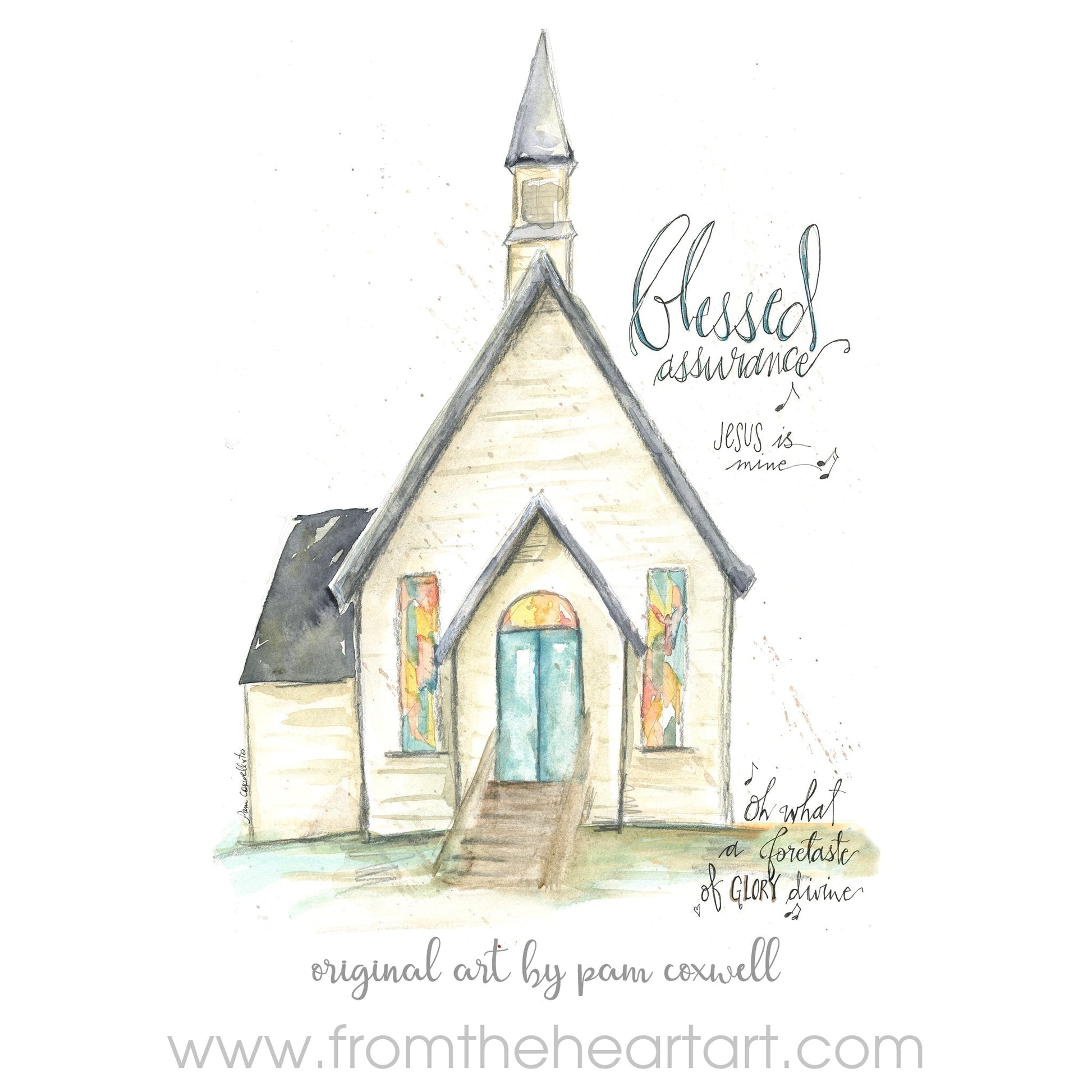 The "Blessed Assurance Chapel" is an original design painted by Pam Coxwell inspired by the hymn "Blessed Assurance".
