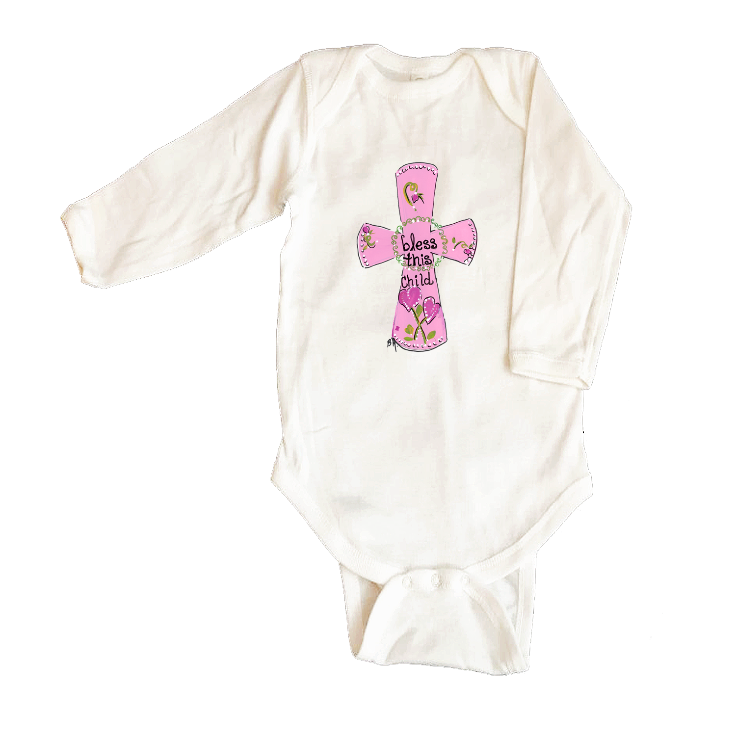 Bodysuit Long Sleeve 1065 Pink Bless this Child Cross