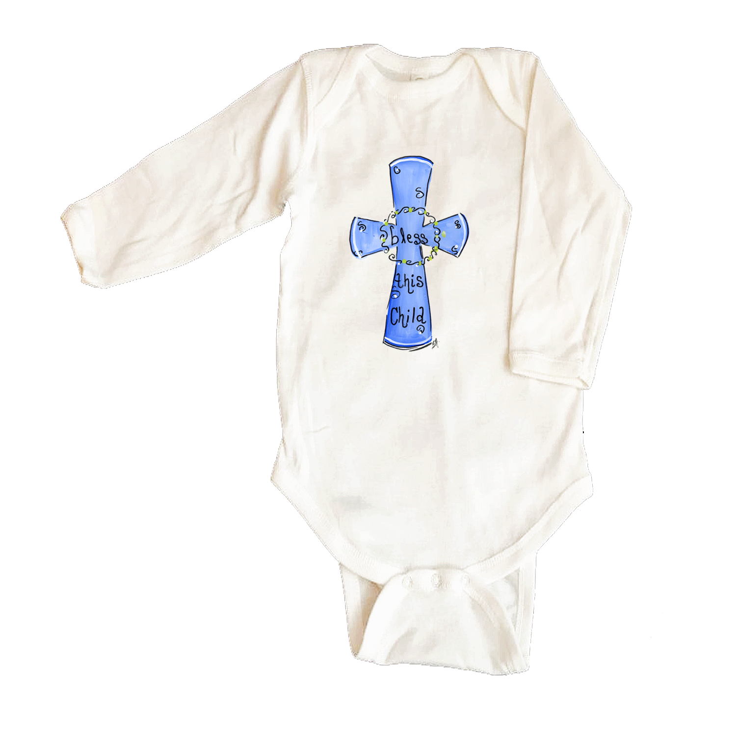 Bodysuit Long Sleeve 1066 Blue-Bless this Child Cross