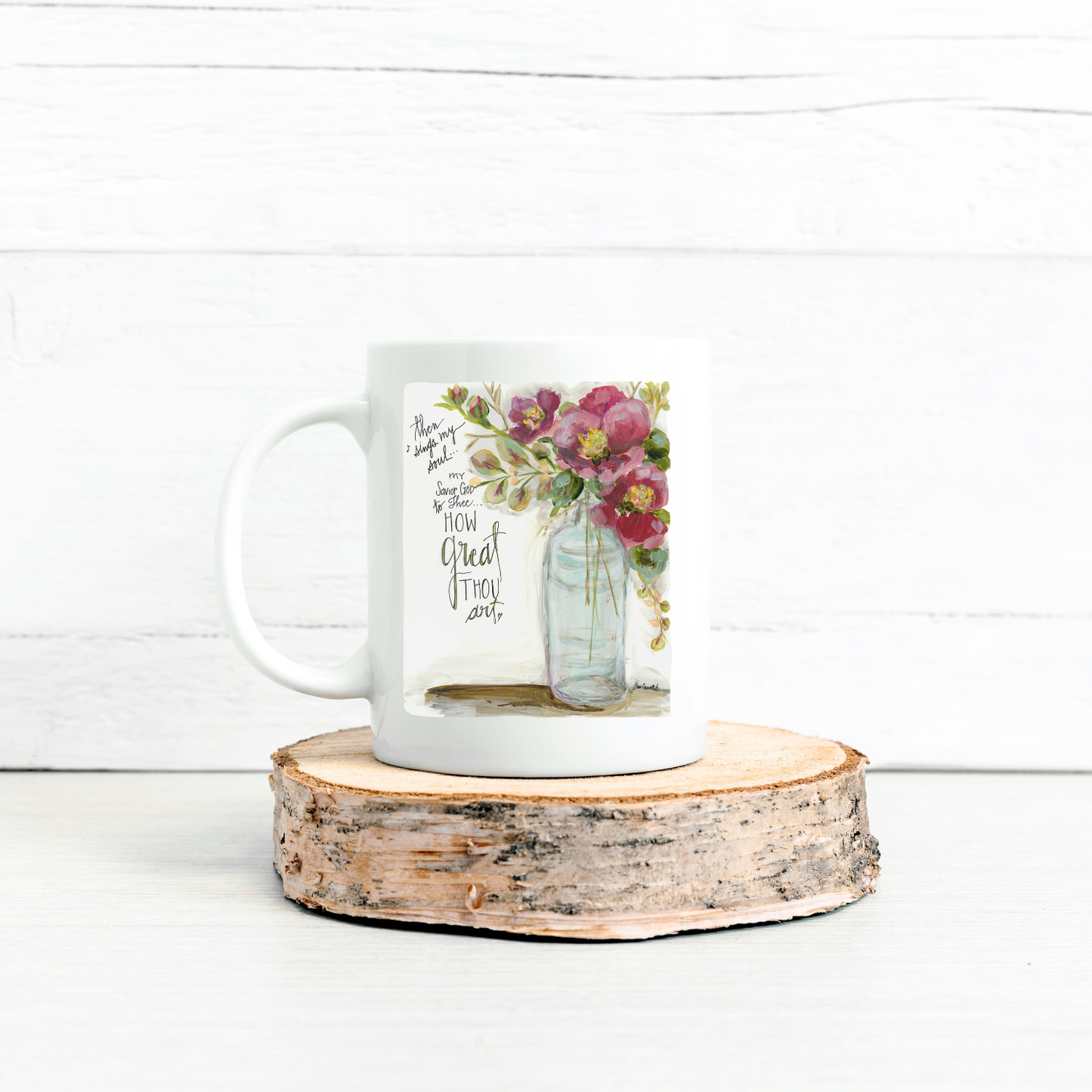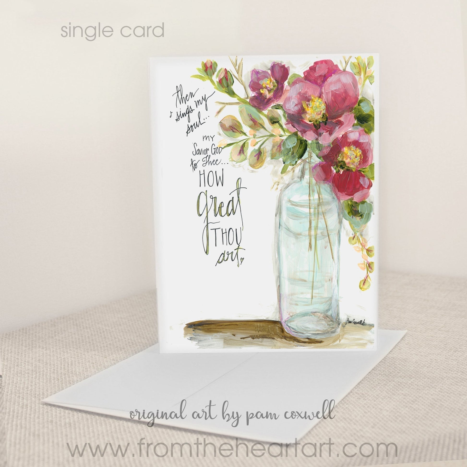 The hymn for this design is "How Great Thou Art" and features the lyrics "then sings my soul, my Savior God to Thee, how great Thou art!"