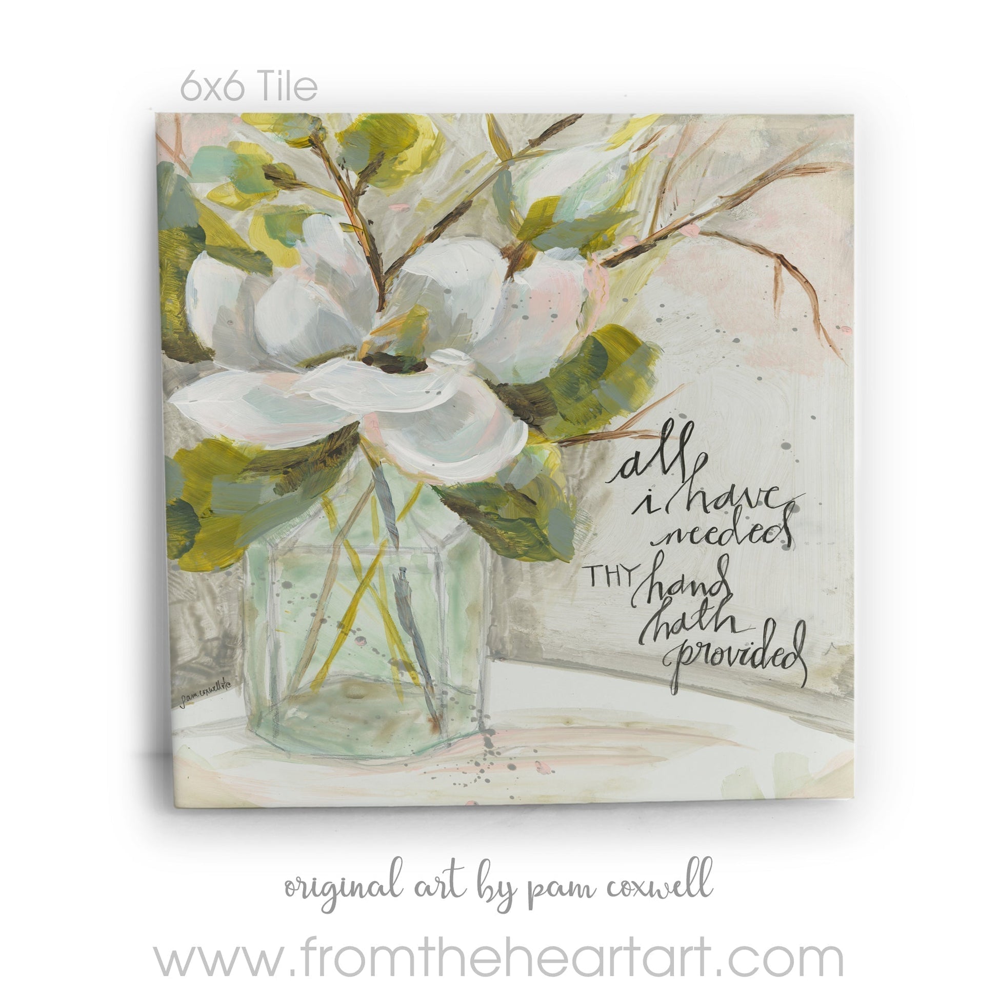 The "Bottle & Magnolia Bloom" is an original design painted by Pam Coxwell.