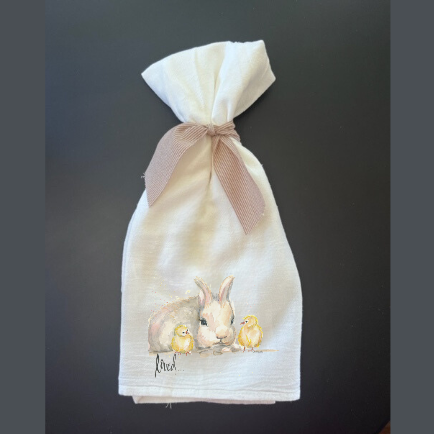 Flour Sack Towels: This 28 x 29-inch flour sack towel is soft-white, 100% cotton, made in the USA from Indian fabric. It is a soft, low-lint, hemmed, medium weight towel. The towel will come tied with a color-coordinating ribbon.