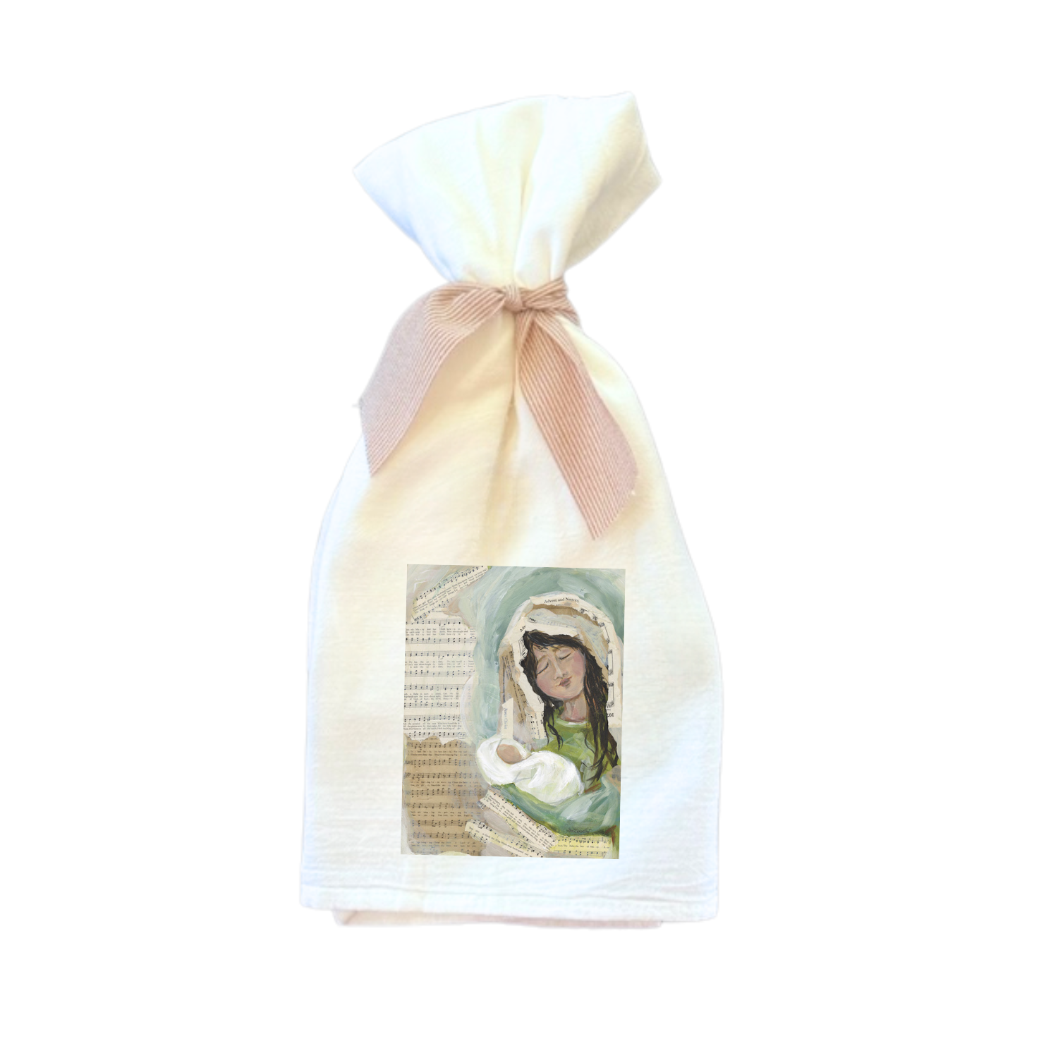Flour Sack Towels: This 28 x 29-inch flour sack towel is soft-white, 100% cotton, made in the USA from Indian fabric. It is a soft, low-lint, hemmed, medium weight towel. The towel will come tied with a color-coordinating ribbon.