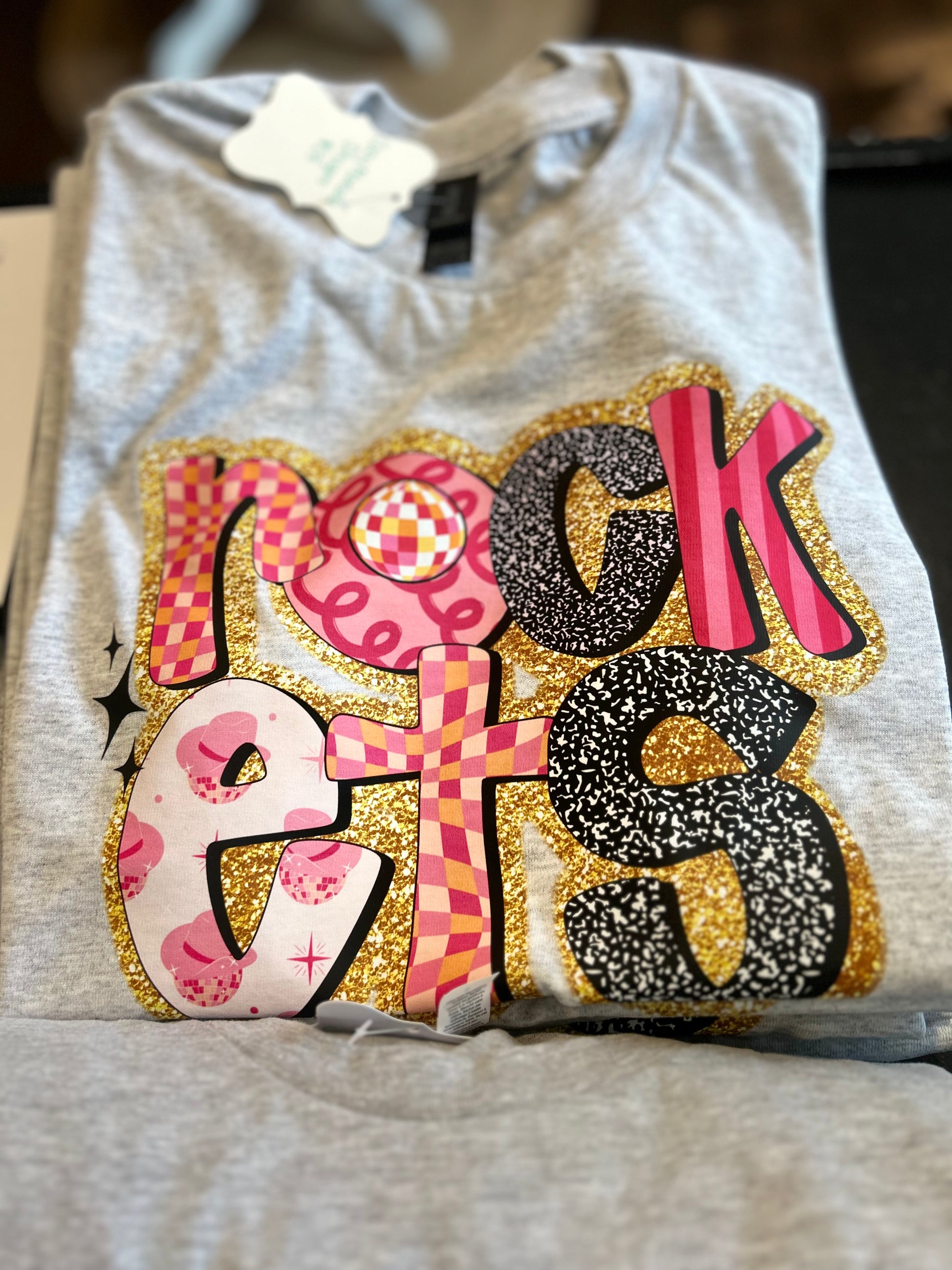 Cozy Momma Rockets Pink -Gold Sparkle TShirt