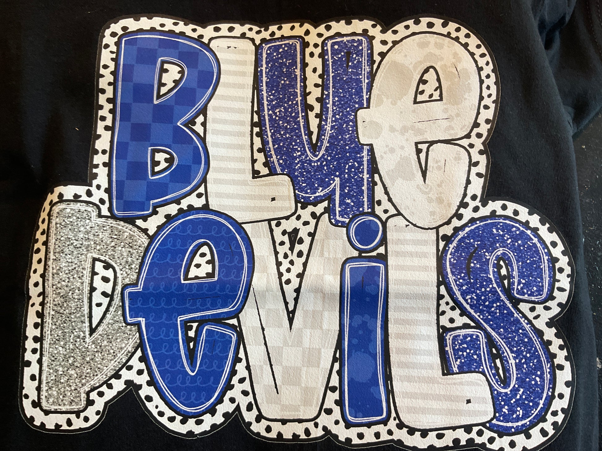 Cozy Momma YOUTH Blue Devils glitter letters black Bella