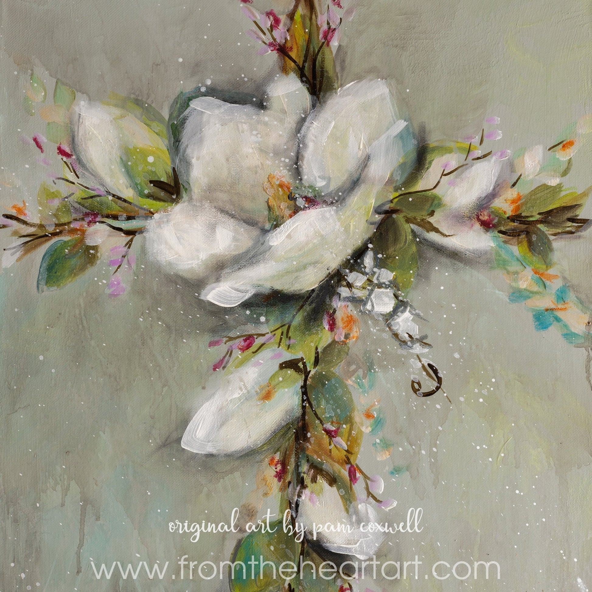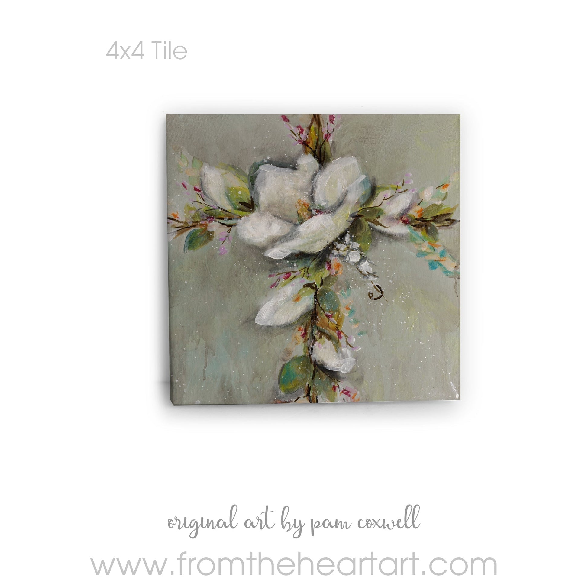 The "Magnolia Cross" is an original design painted by Pam Coxwell.