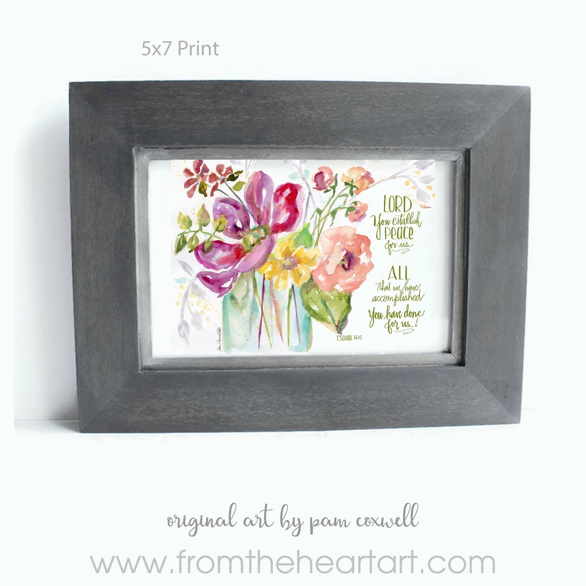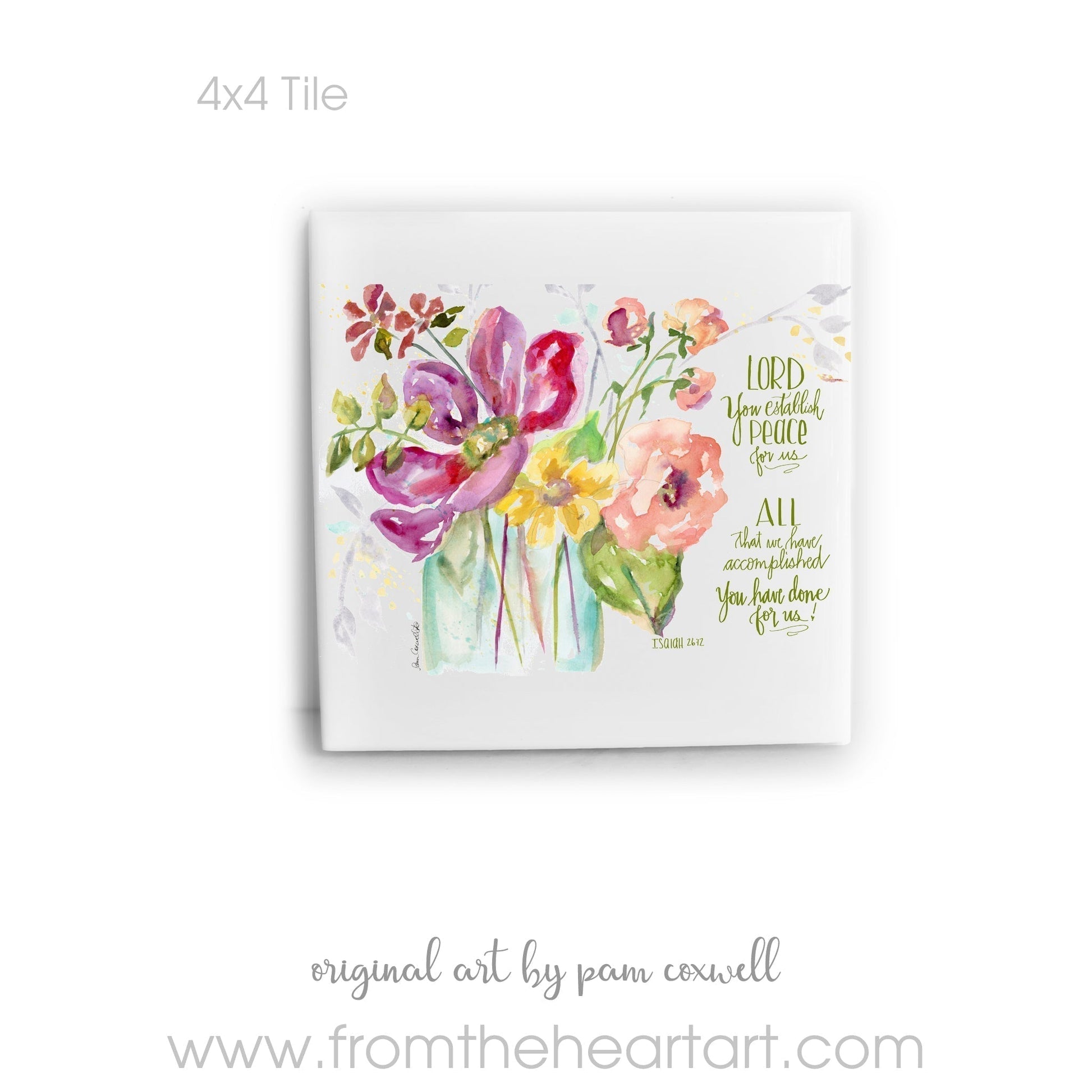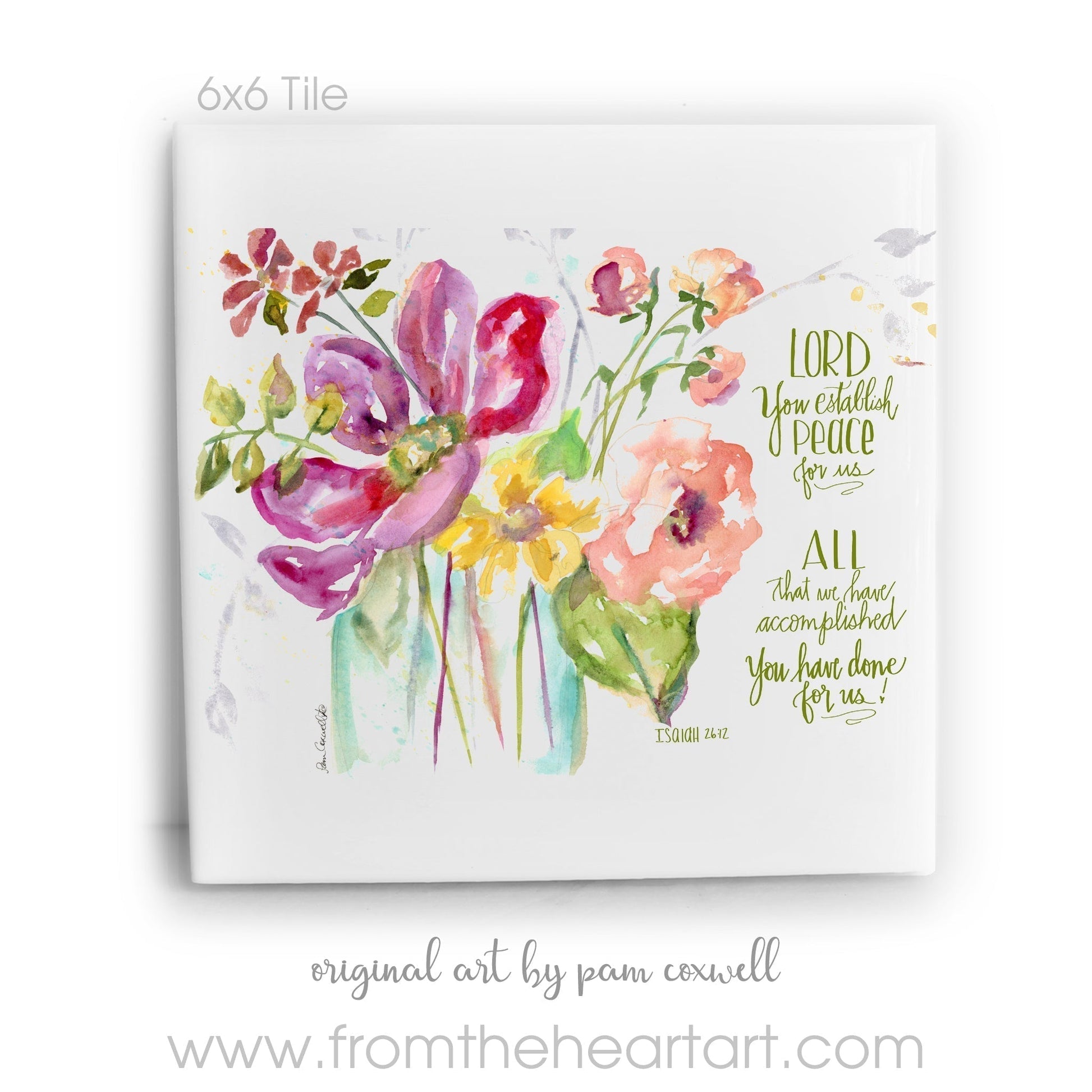 The verse for this design is Isaiah 26:12, "Lord, you establish peace for us;