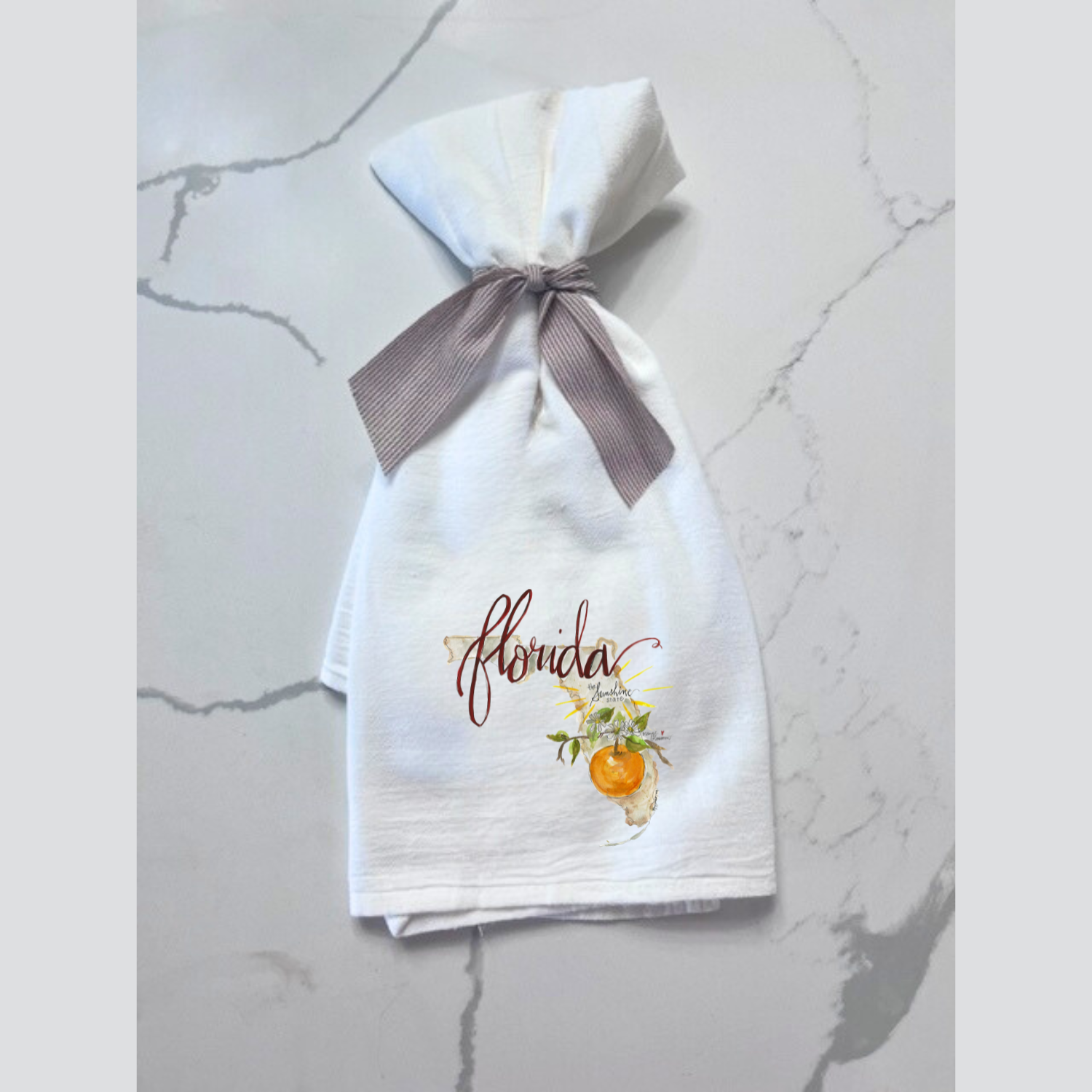 Flour Sack Towels: This 28 x 29-inch flour sack towel is soft-white, 100% cotton, made in the USA from Indian fabric. It is a soft, low-lint, hemmed, medium weight towel. The towel will come tied with a color-coordinating ribbon.
