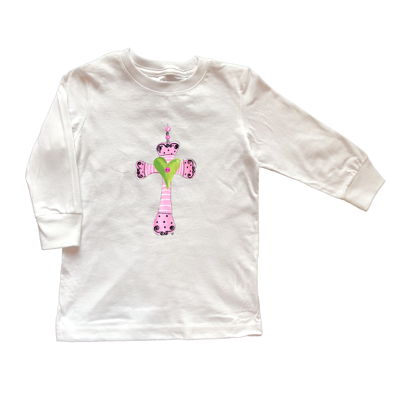 Cotton Tee Shirt Long Sleeve 859 Pink Cross