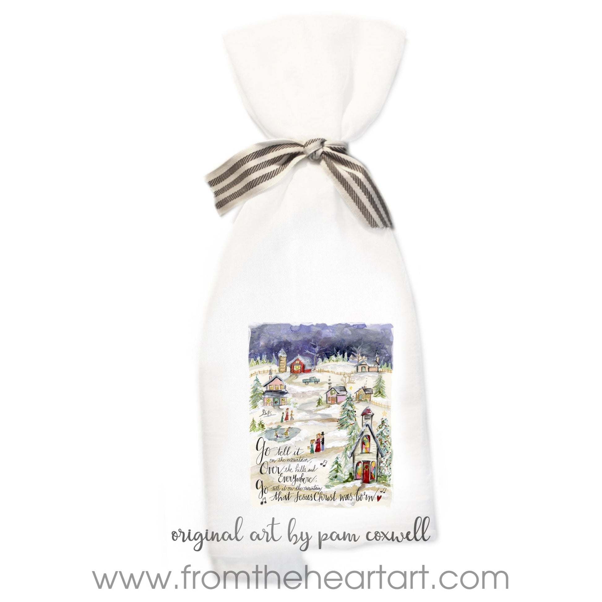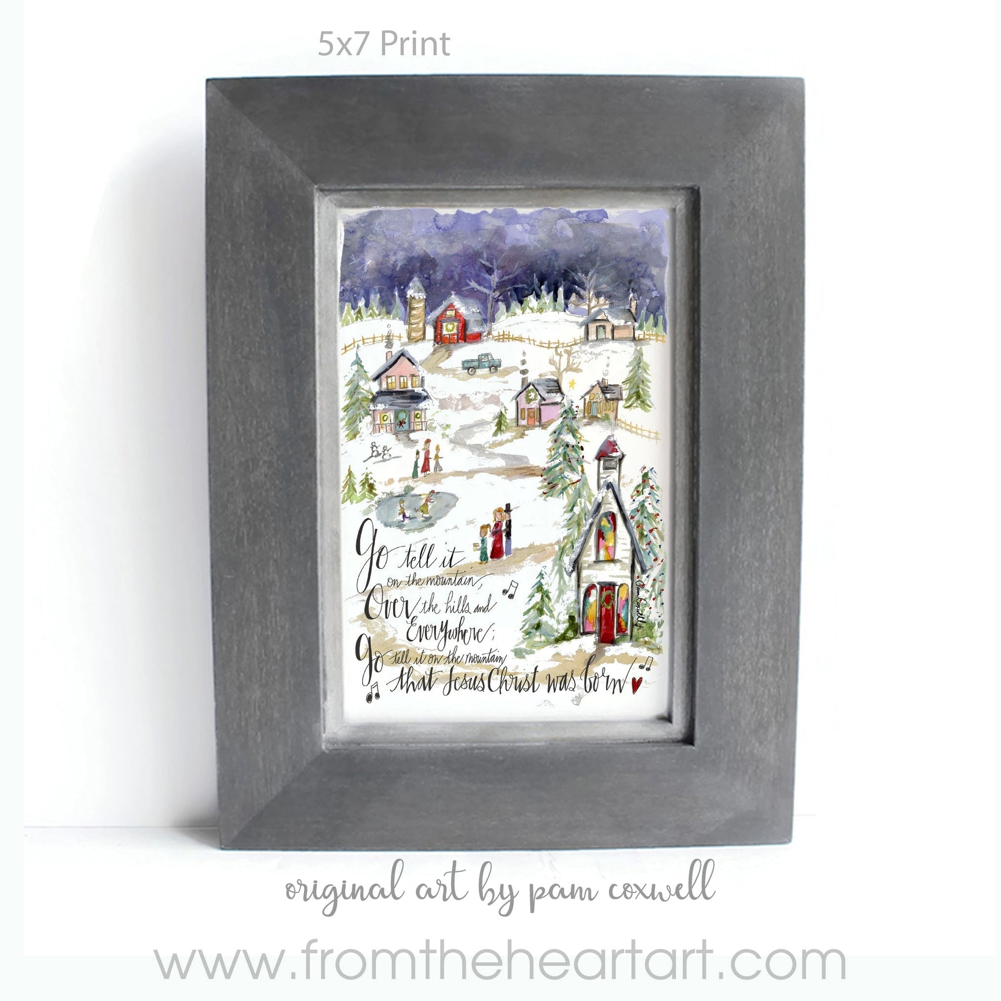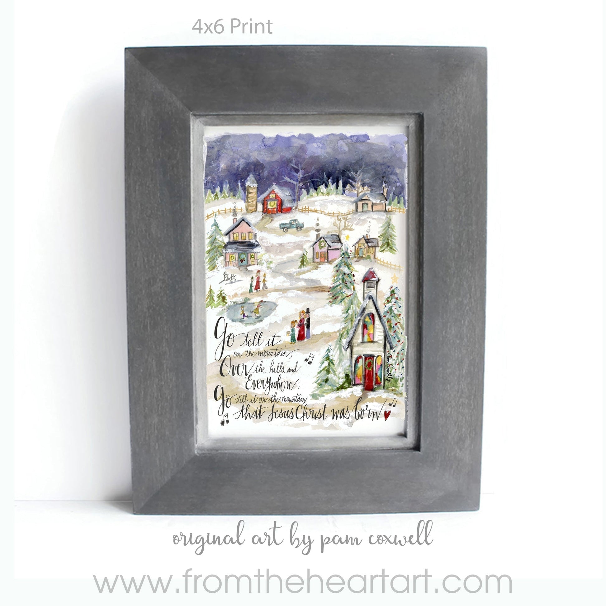 The "Go Tell it on the Mountain" is an original design painted by Pam Coxwell based on the hymn of the same name.