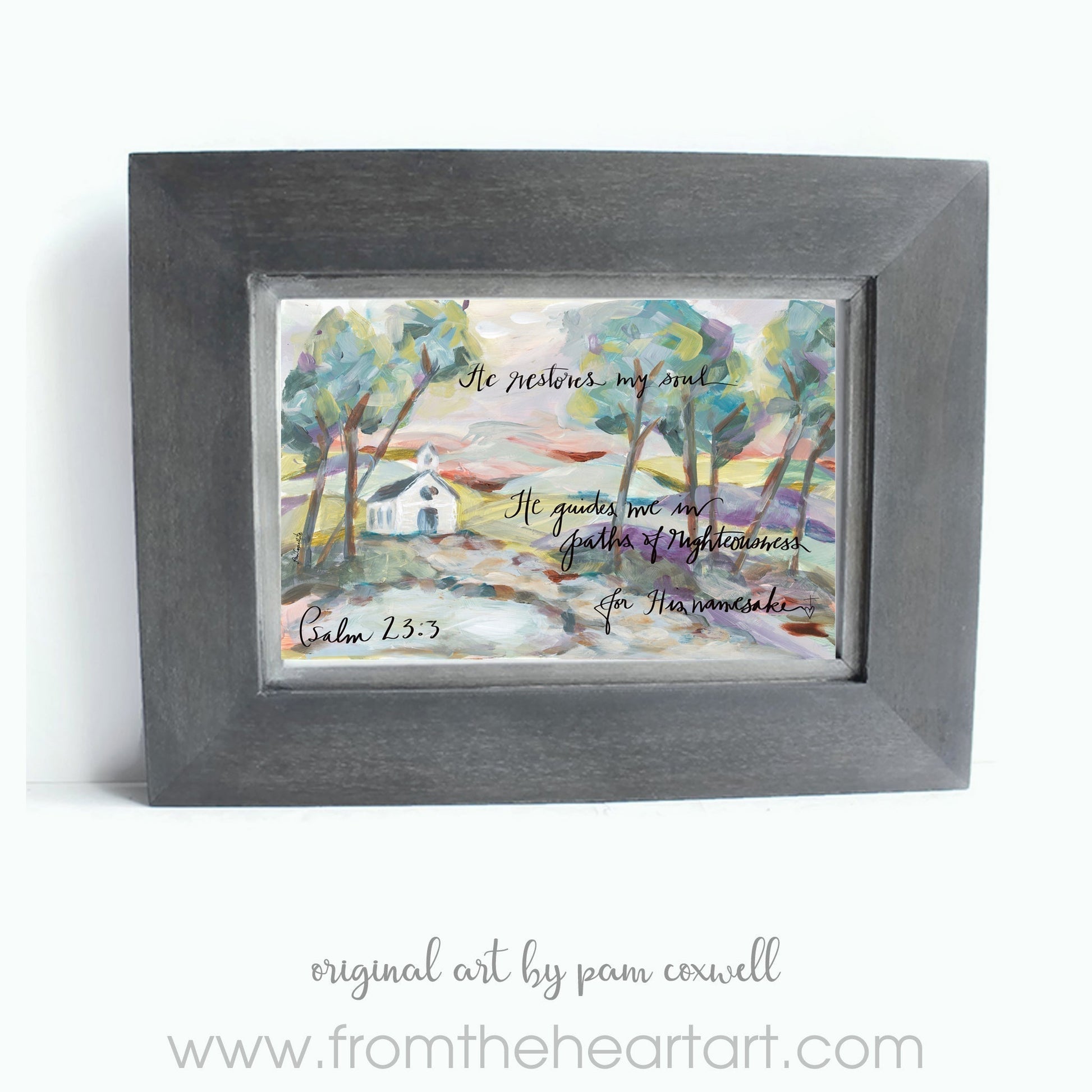The "He Restores" is an original design painted by Pam Coxwell.