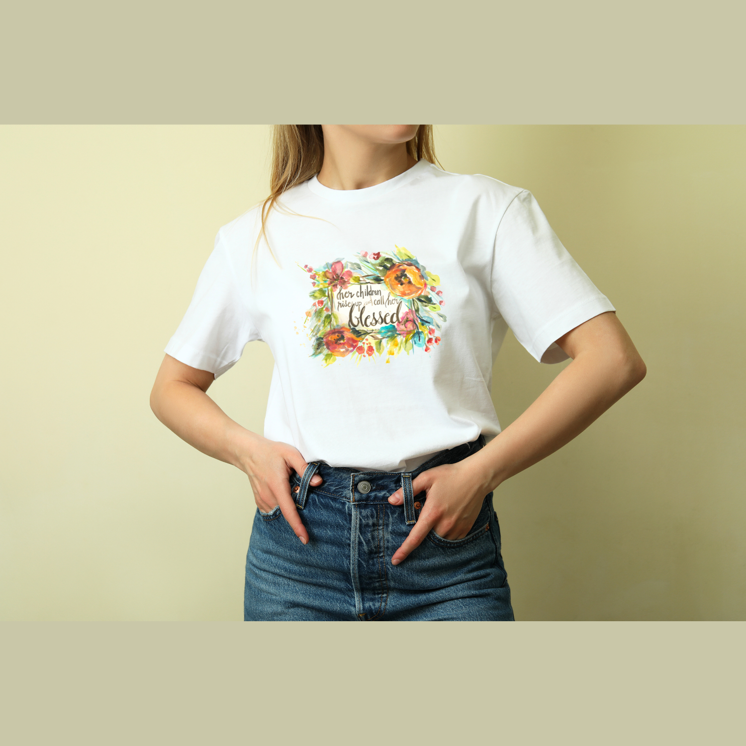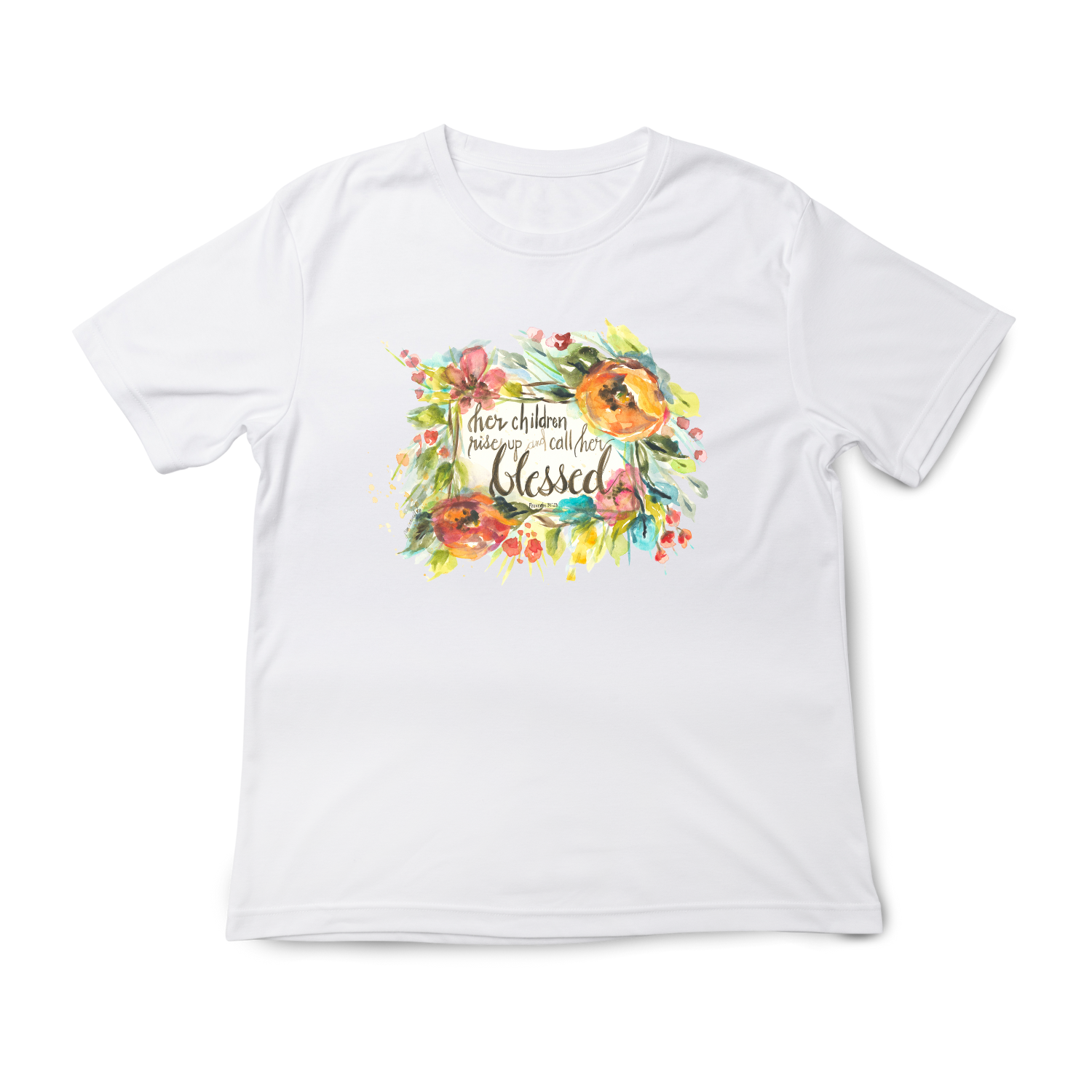 The "Her Children" design is an original design painted by Pam Coxwell with scripture from Proverbs 31:28, "Her children rise up and call her blessed."