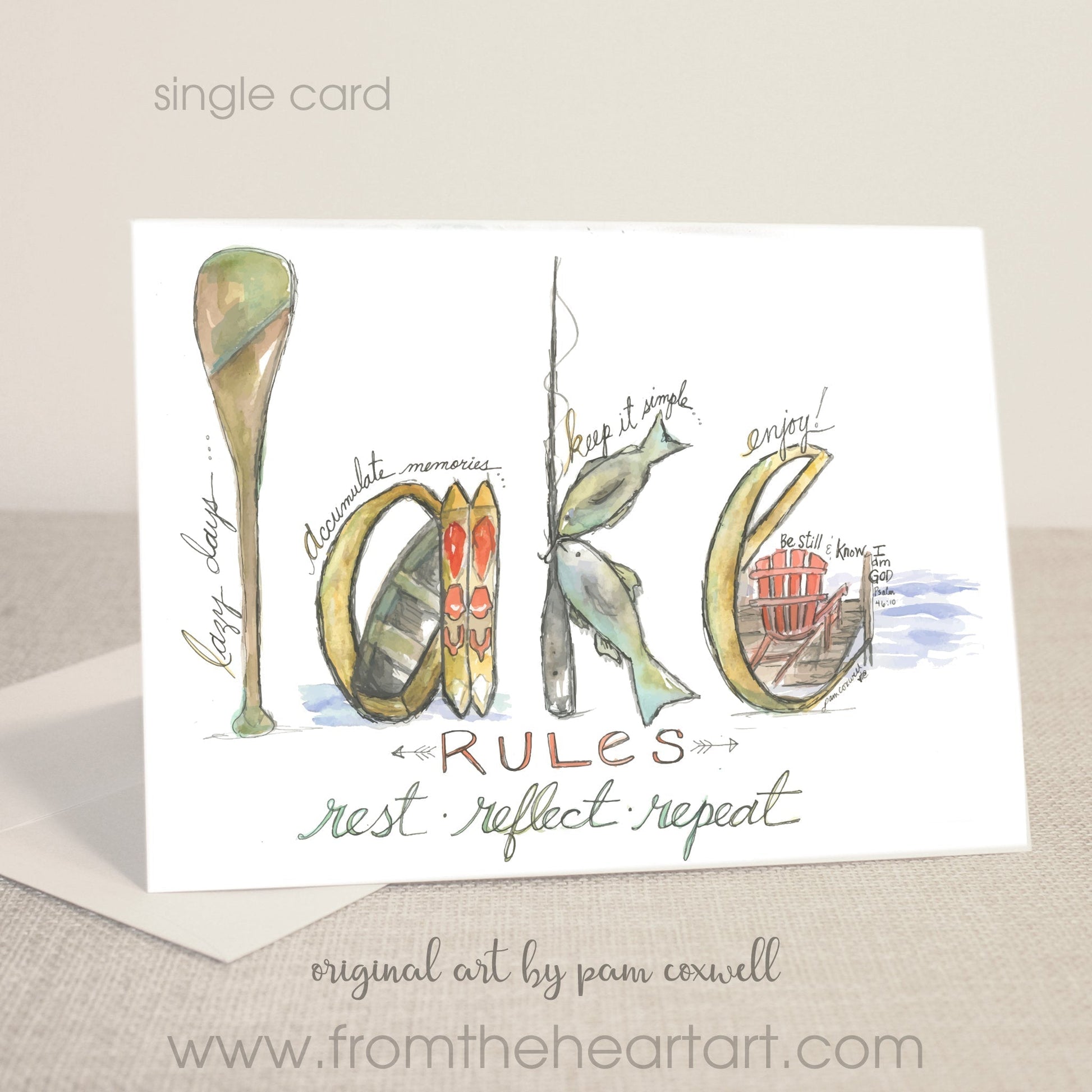 The "Lake" word art design is an original design painted by Pam Coxwell.