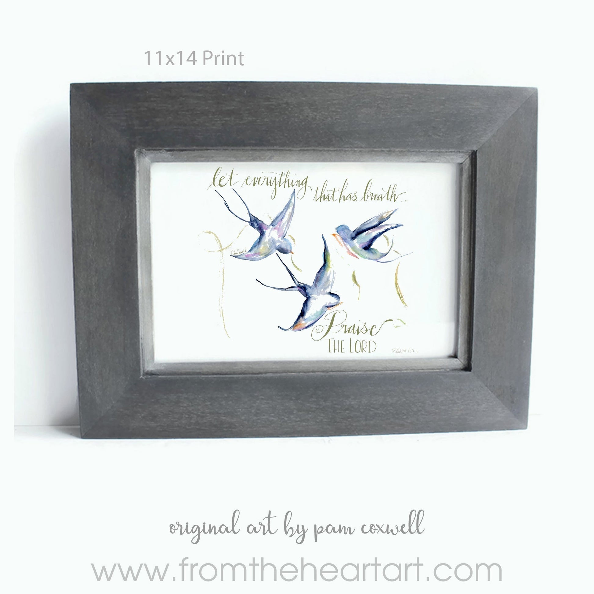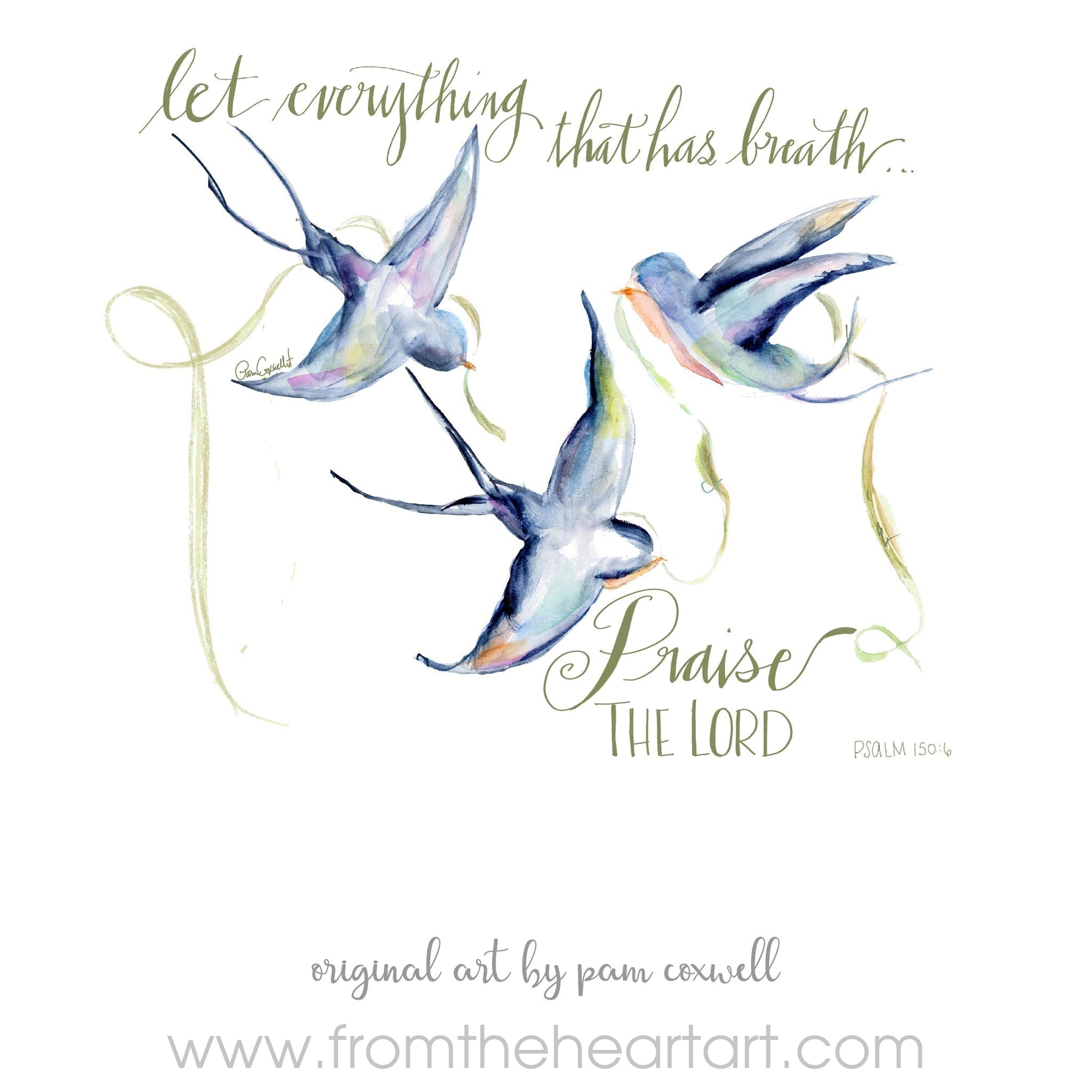 The verse for this design is from Psalm 150:6, "Let everything that has breath praise the Lord."