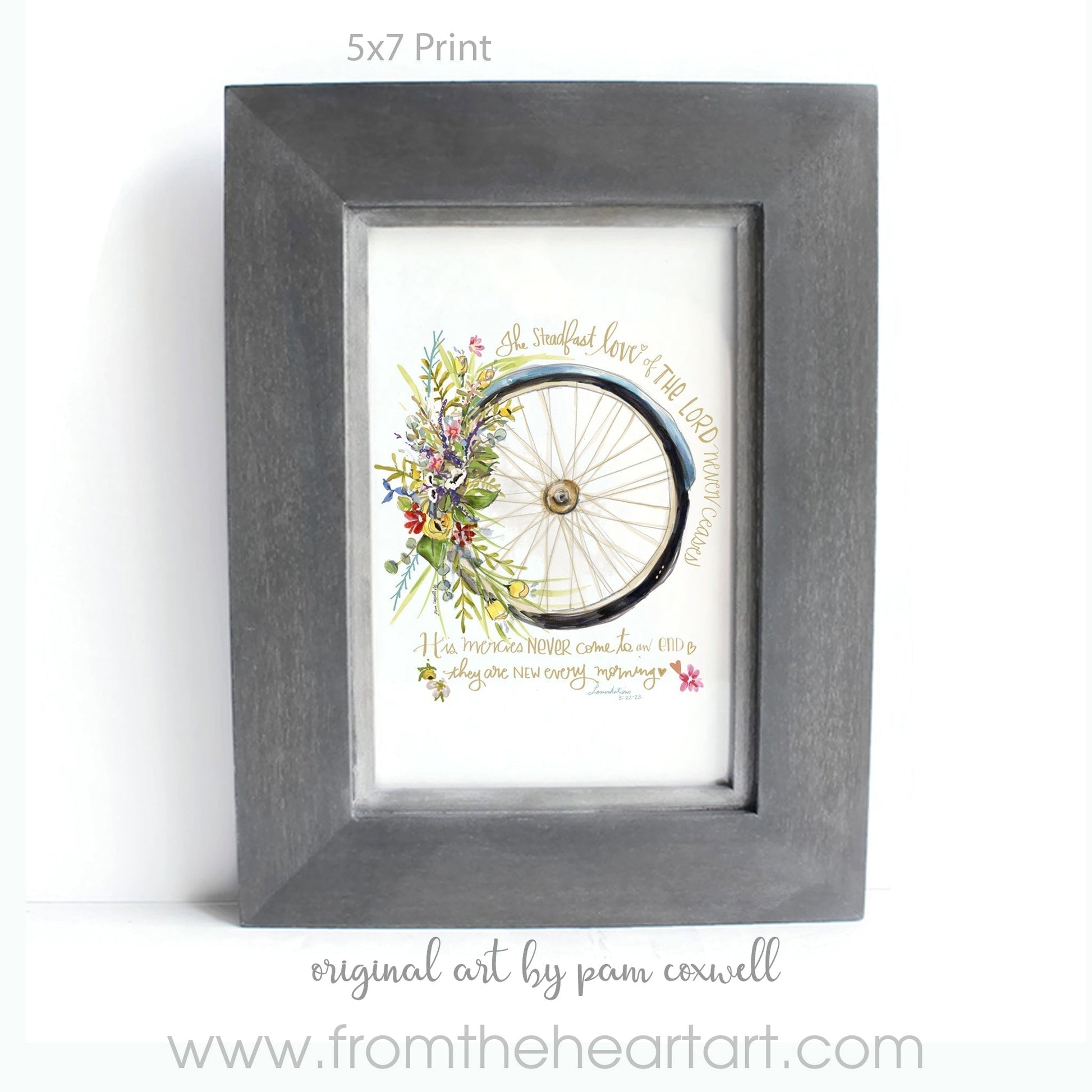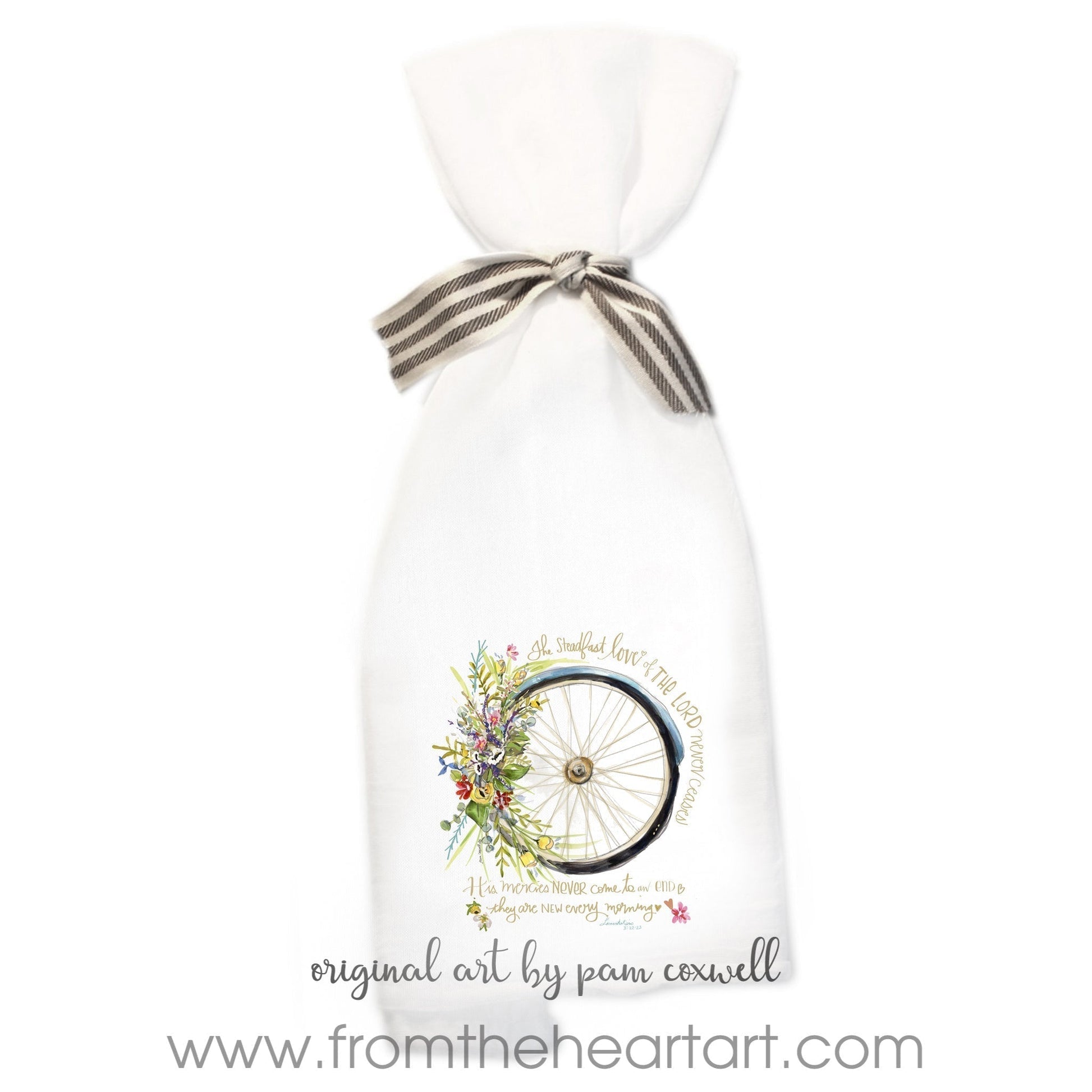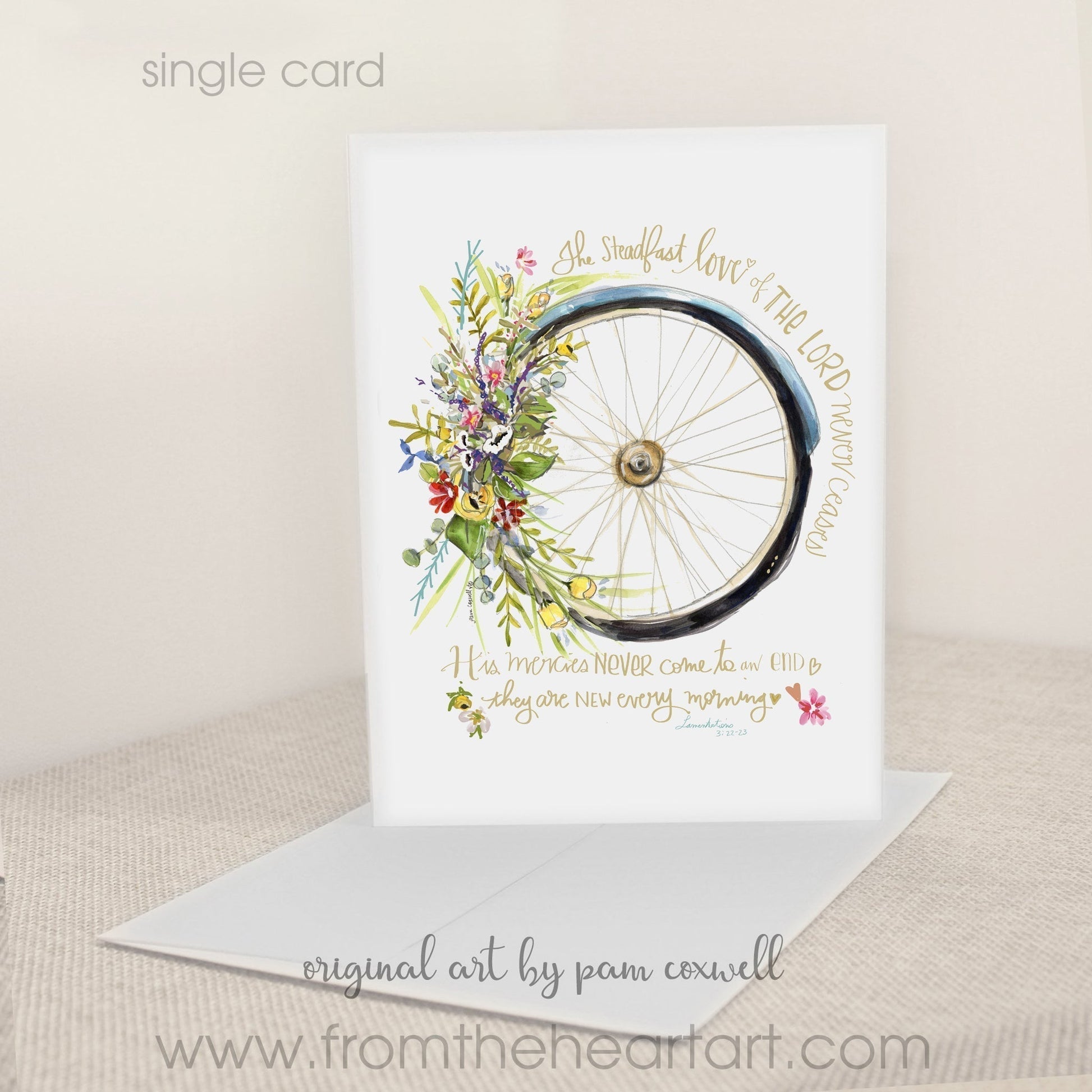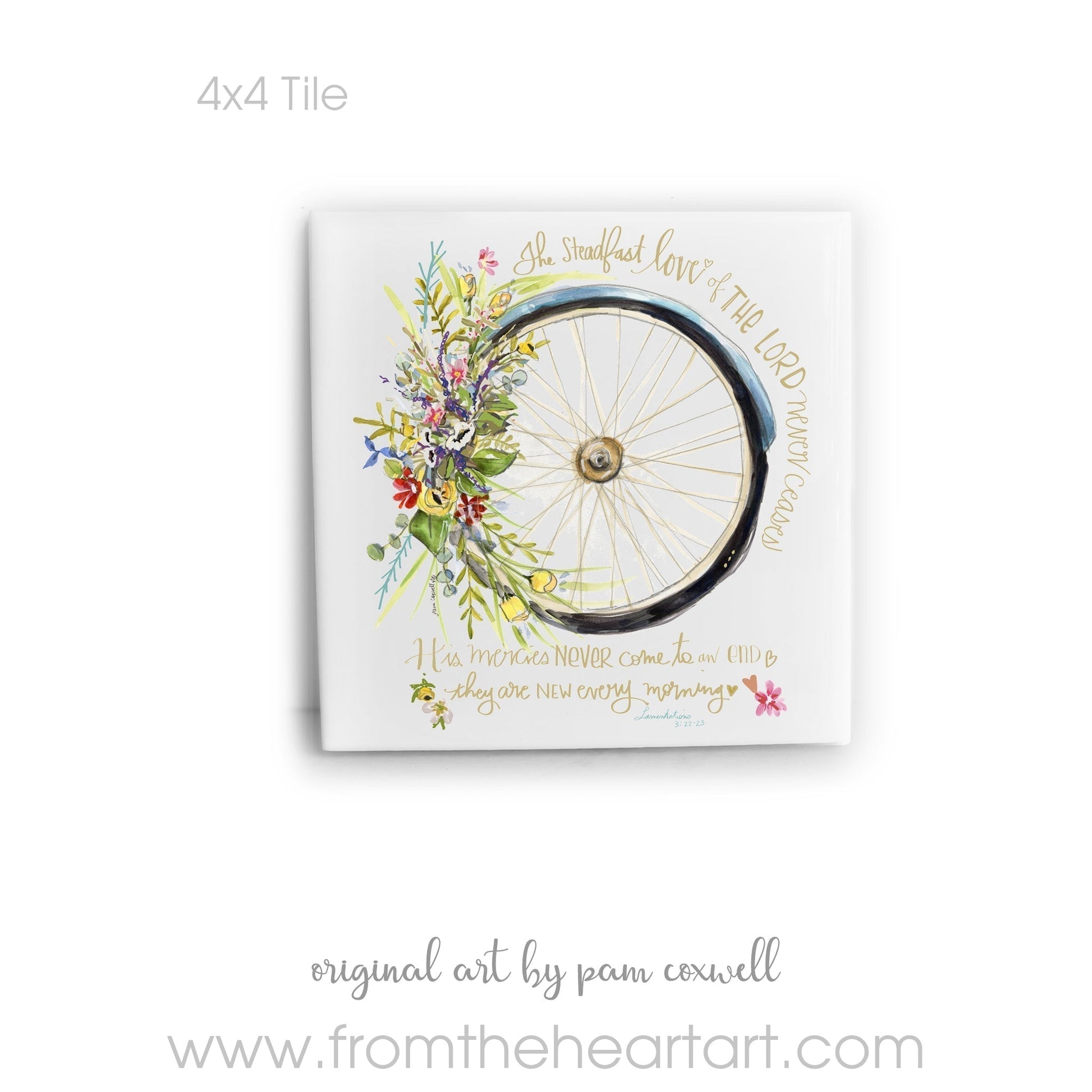 The verse on this design is from Lamentations 3:22-23, "The Steadfast love of The Lord never ceases. His Mercies never come to an end, they are new every morning."