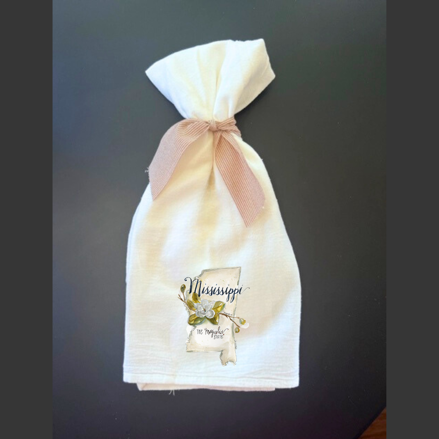 Flour Sack Towels: This 28 x 29-inch flour sack towel is soft-white, 100% cotton, made in the USA from Indian fabric. It is a soft, low-lint, hemmed, medium weight towel. The towel will come tied with a color-coordinating ribbon.
