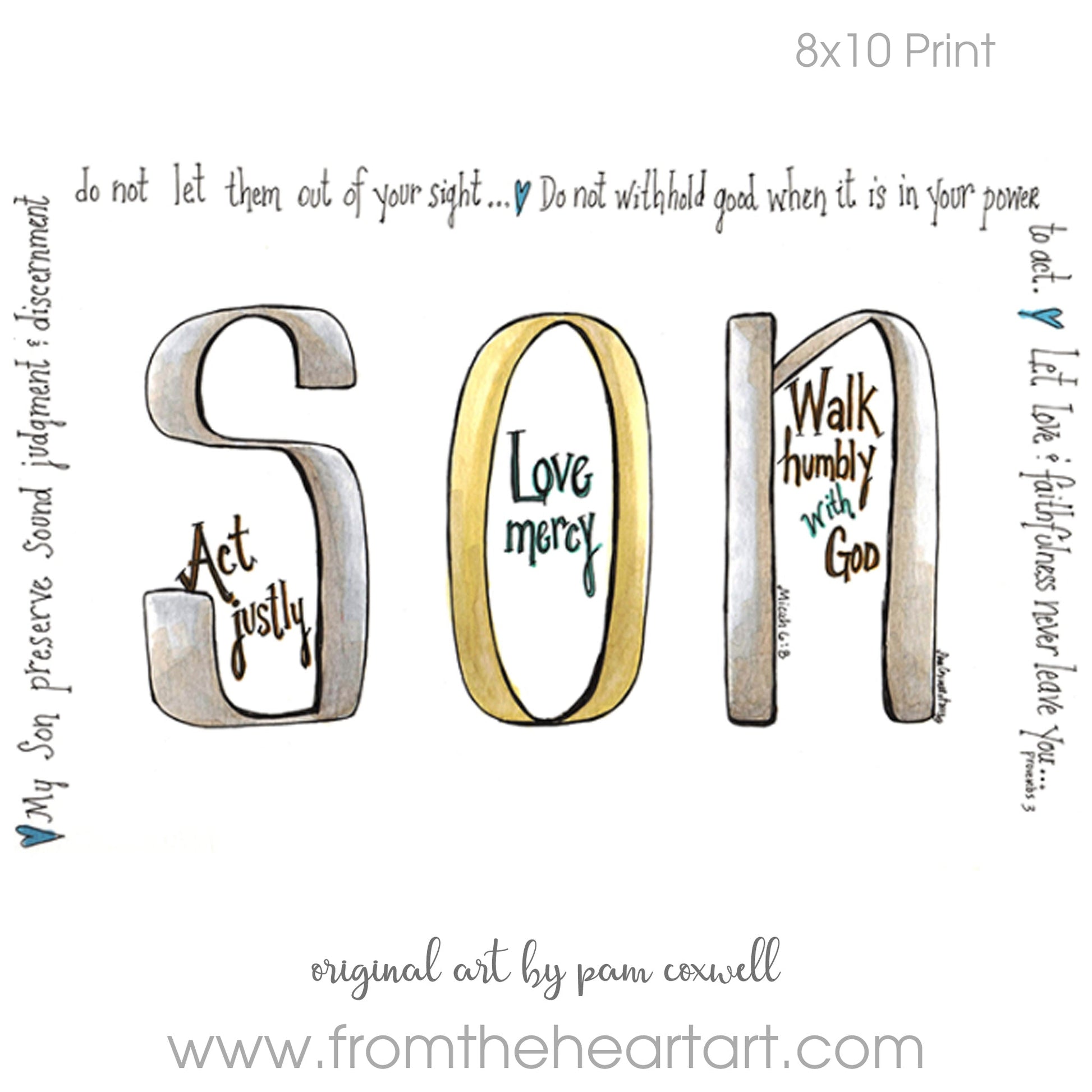 The "Son" is an original design painted by Pam Coxwell with scripture from Proverb 3:1-3.