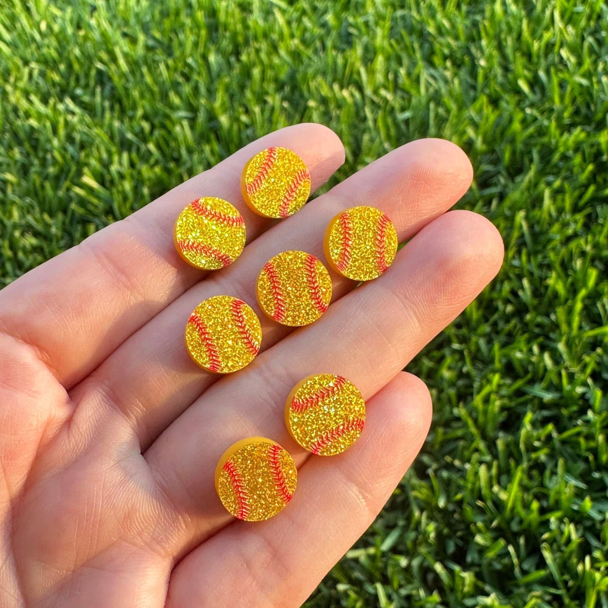 Sports Softball Round Glitter Stud