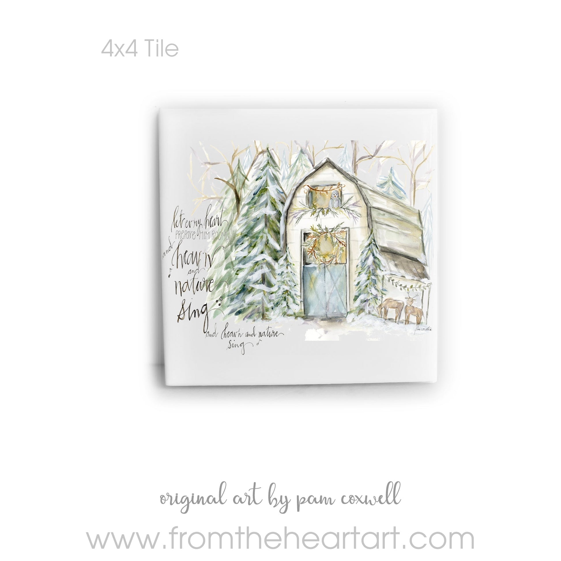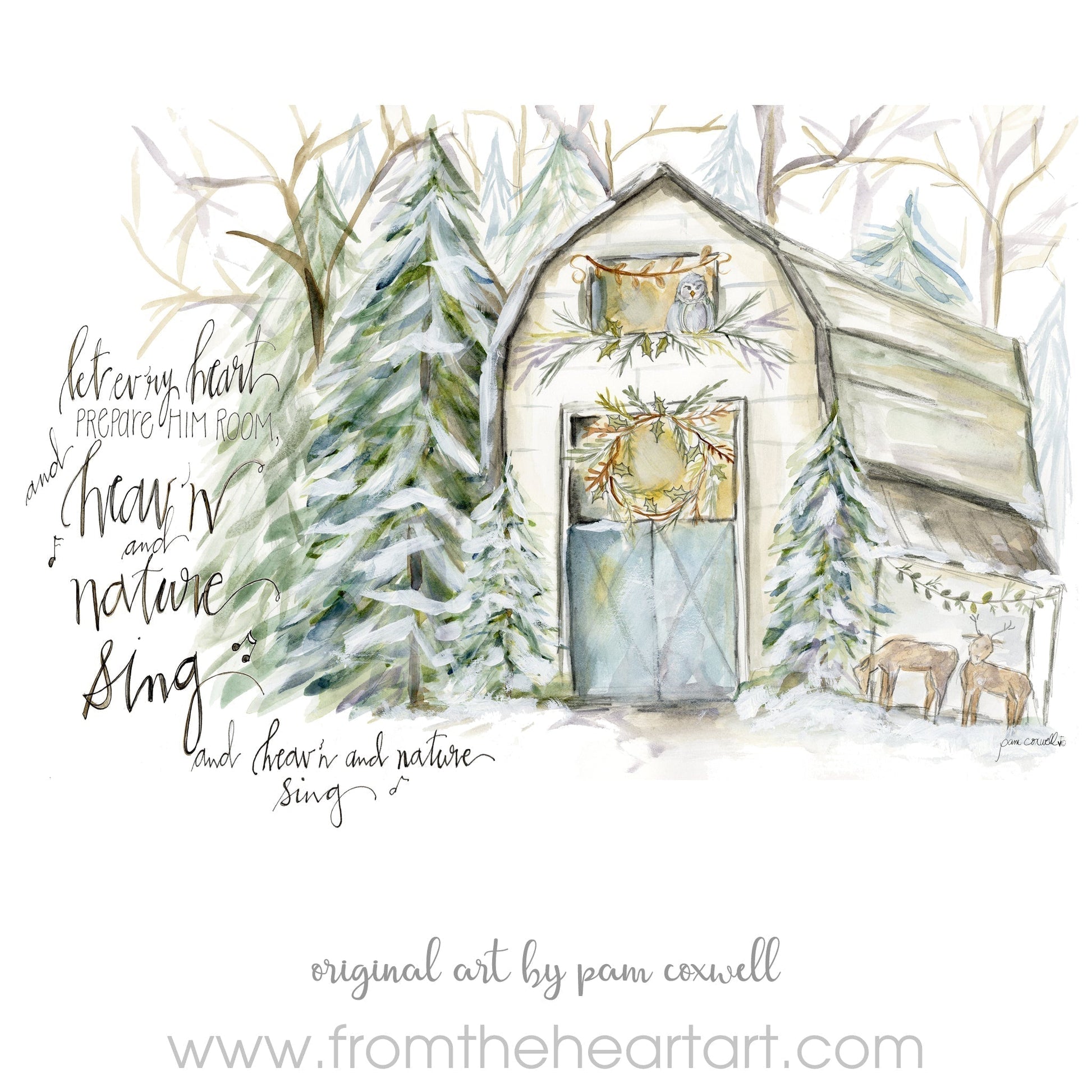The "Winter Cove Barn" is an original design painted by Pam Coxwell.
