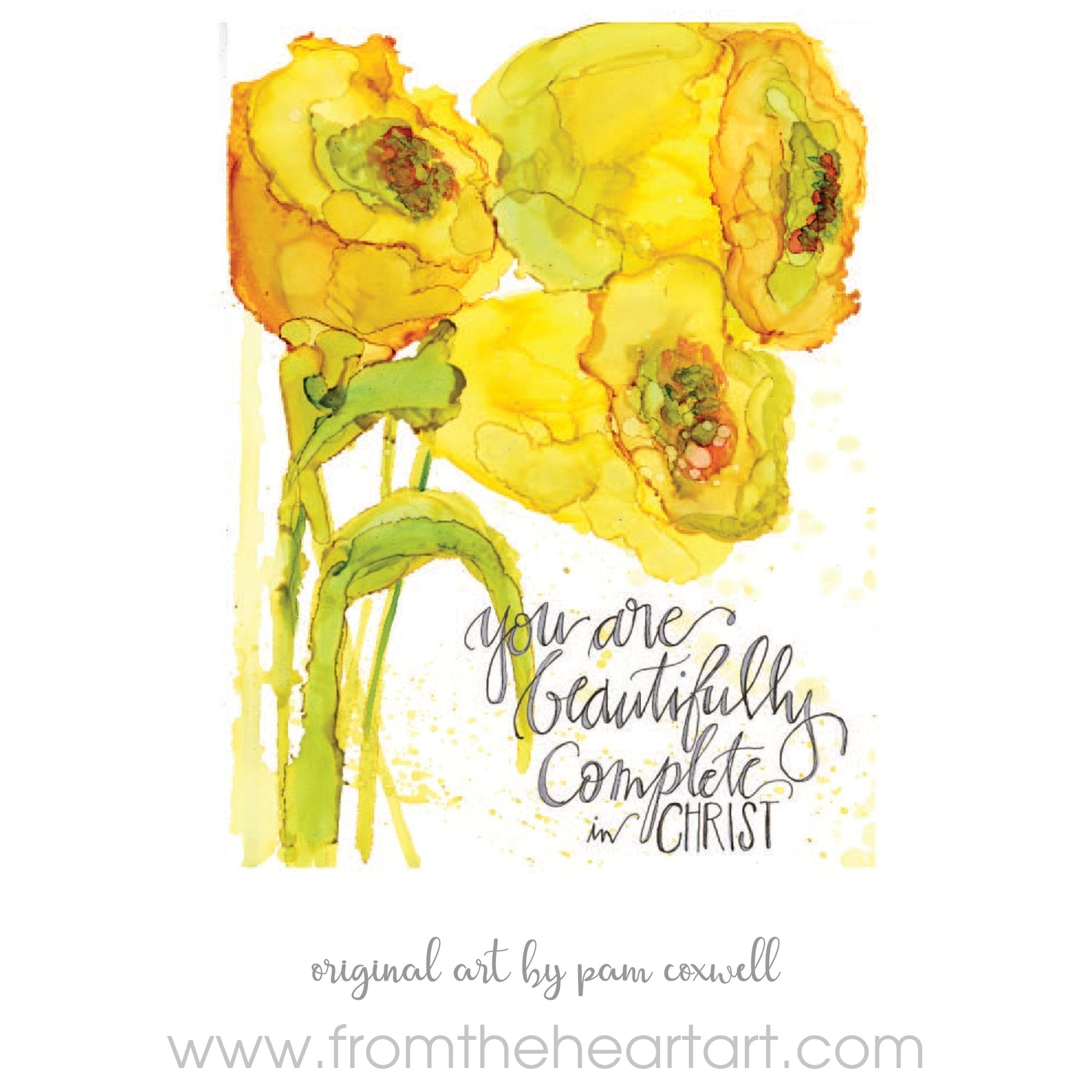 The "You Are Beautifully Complete" is an original design painted by Pam Coxwell.